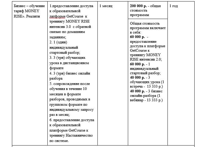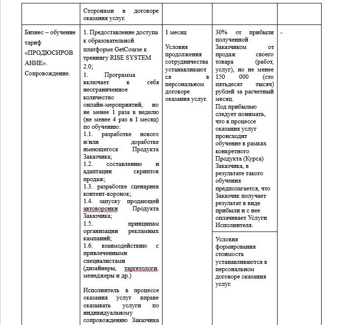 Поскольку предметом настоящего Договора является оказание услуг по бизнес-обучению, в зависимости от выбранного пакета услуг стоимость может определяться в фиксированной сумме или устанавливаться в виде процента от прибыли, полученной Заказчиком от продаж своего товара (работ, услуг) в период действия настоящего Договора.
