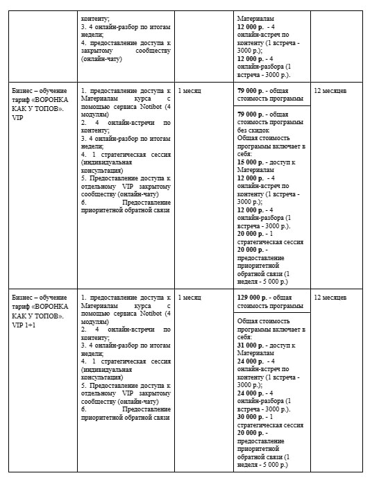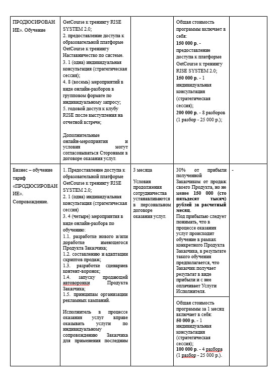 2.4. Поскольку предметом настоящего Договора является оказание услуг по бизнес-обучению, в зависимости от выбранного пакета услуг стоимость может определяться в фиксированной сумме или устанавливаться в виде процента от прибыли, полученной Заказчиком от продаж своего товара (работ, услуг) в период действия настоящего Договора.