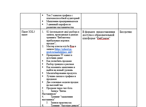 4.4.2. Услуги в форме предоставления доступа к закрытому разделу Сайта Исполнителя/образовательной платформе “GetCourse”;